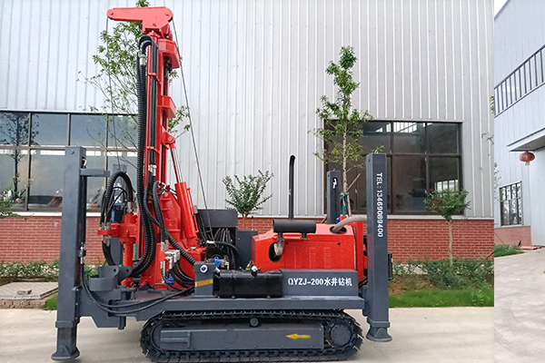清泉200型潛孔水井鉆機 發(fā)動機功率:玉柴77.3千瓦。 油泵:32/32/16: 動力頭馬達(dá): BM5-3054 最大扭矩: 8000扭米。 最大提升力: 18噸。 操作閥:三立。 整機機重: 6.2噸。 尺寸:長3.8米,寬1.85米,高2. 35米。 鉆孔直徑: 105-350 毫米。 鉆桿直徑: φ76/φ89 毫米(3米)。 一次性推進(jìn)長度: 3000 毫米。