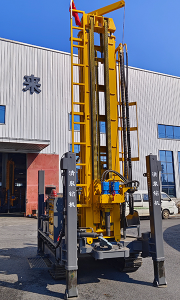 清泉400型潛孔水井鉆機(jī) 發(fā)動(dòng)機(jī)功率:玉柴股份六缸92千瓦。 油泵:美國(guó)泊姆克。 動(dòng)力頭馬達(dá): BM6-390。 最大扭矩: 12000 扭米+ 最大提升力: 30噸。 操作閥:三立。 整機(jī)機(jī)重: 8.8噸。 尺寸:長(zhǎng)5.8米(底長(zhǎng)4.15米),寬1.9米,高2.5米。 鉆孔直徑: 105-400 毫米。 鉆桿直徑:中76/φ89(3米)。 一次性推進(jìn)長(zhǎng)度: 6600 毫米。